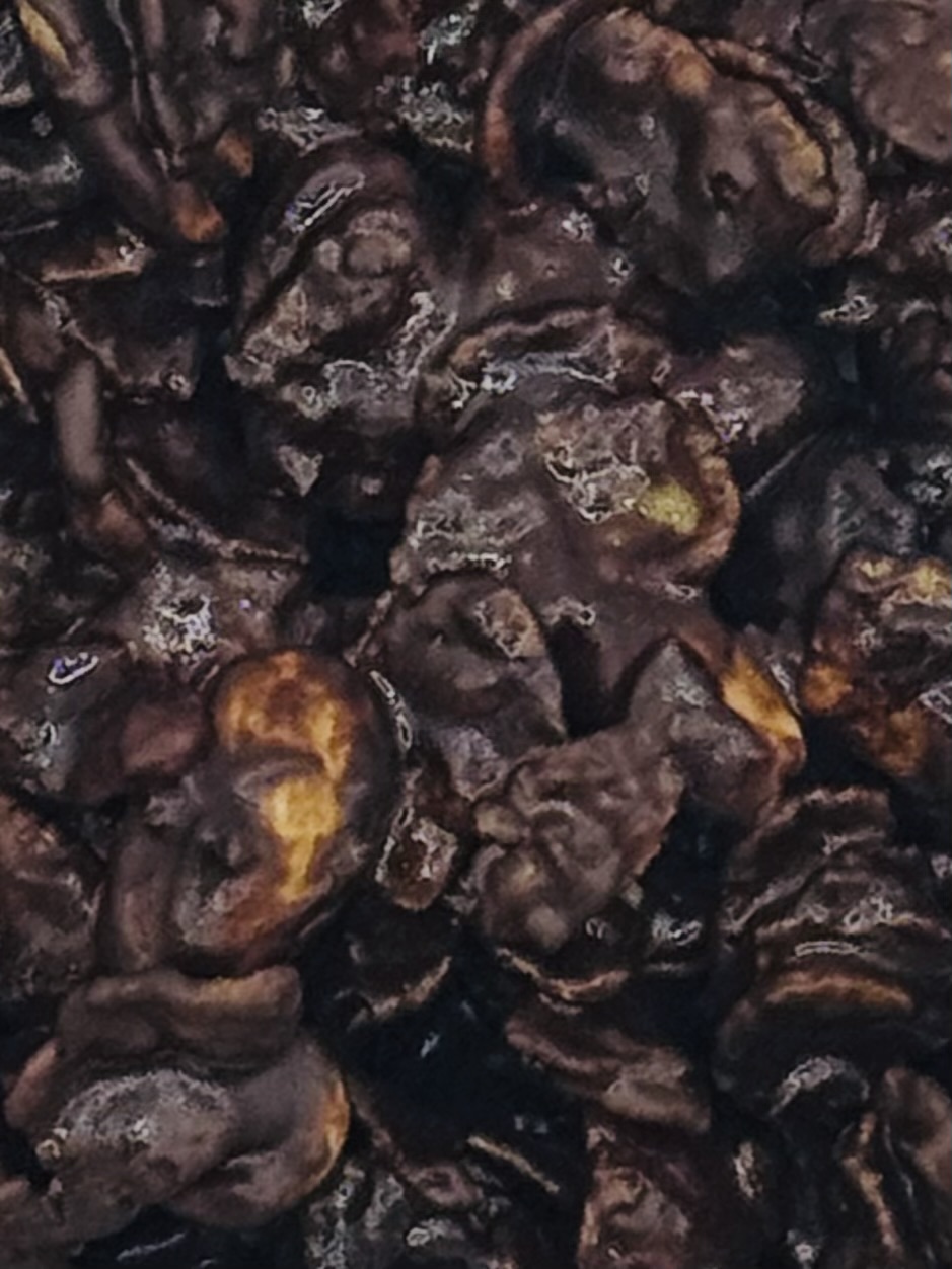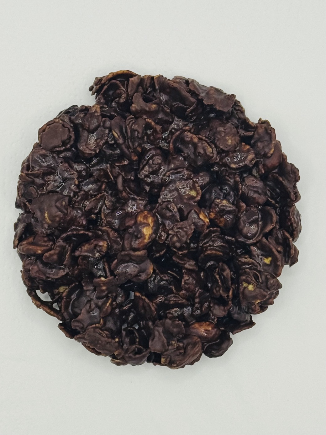Corn Flakes, Chocolat Noir, Purée d’Amandes, Cacahuètes, Raisn Sec.